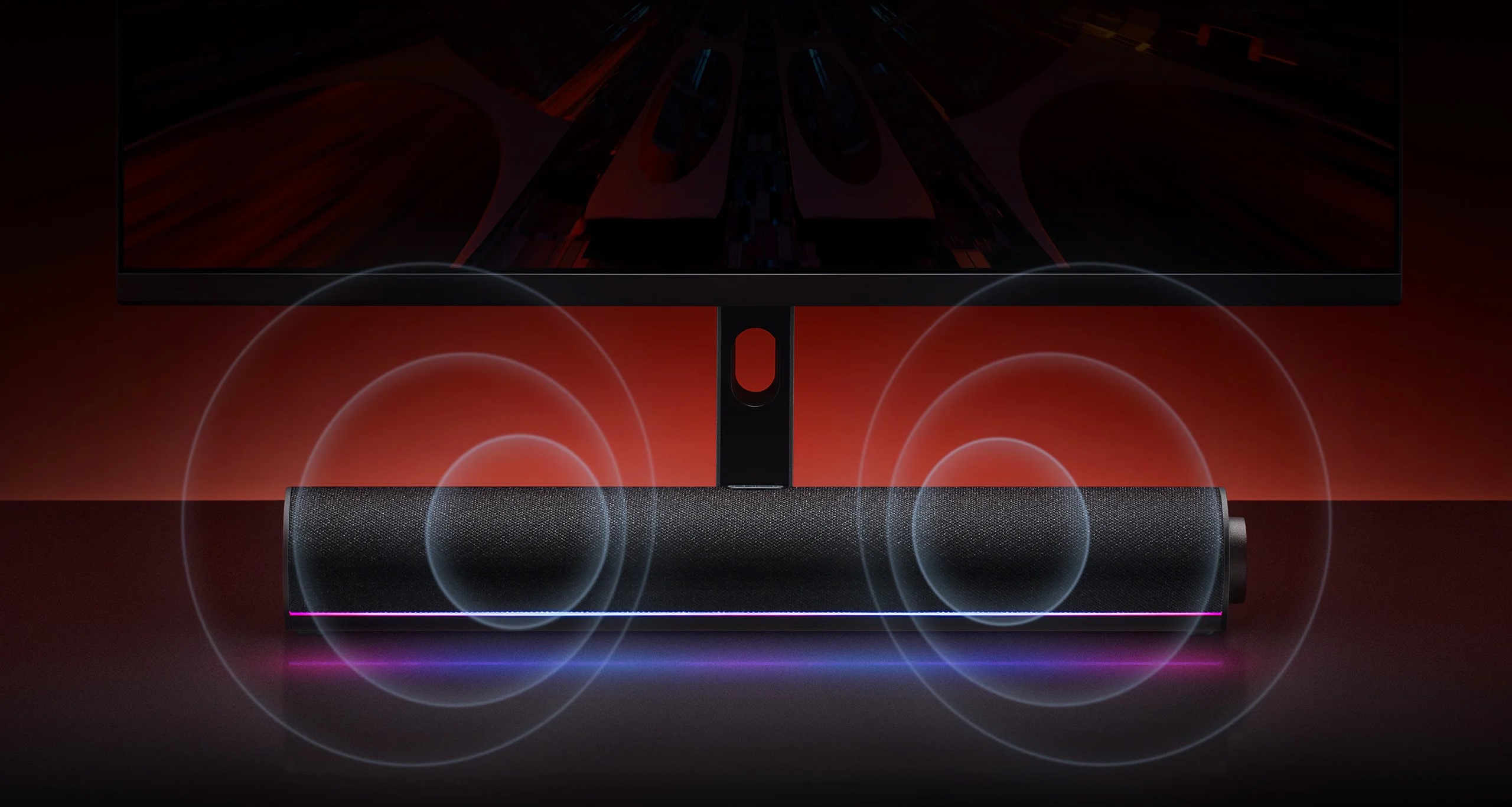 Саундбар имеет пять режимов RGB-подсветки из 16 светодиодов, расположенных в ряд в нижней части корпуса.