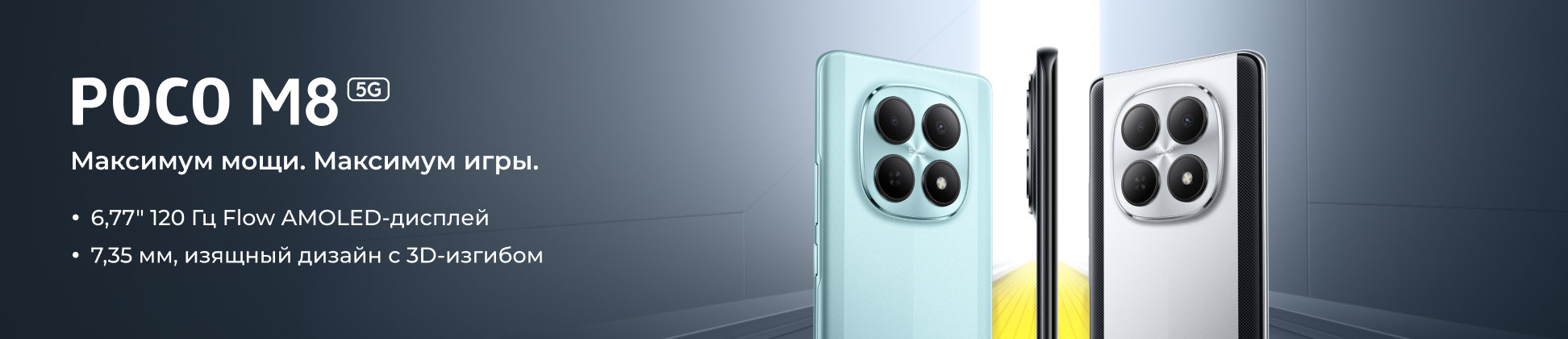 POCO M8 — мощь и стиль в тонком корпусе. Новый уровень производительности обеспечивает процессор Snapdragon 6 Gen 3 и HyperOS 2 с поддержкой 5G. Наслаждайтесь чётким 6.77-дюймовым AMOLED-экраном 120 Гц и стереозвуком с Dolby Atmos. Основная камера 50 МП с оптической стабилизацией и фронтальная 20 МП создают идеальные кадры. Автономность гарантирует аккумулятор 5520 мАч с быстрой зарядкой 45 Вт, а надёжная защита от воды и пыли по стандарту IP66 позволяет использовать смартфон в любых условиях.